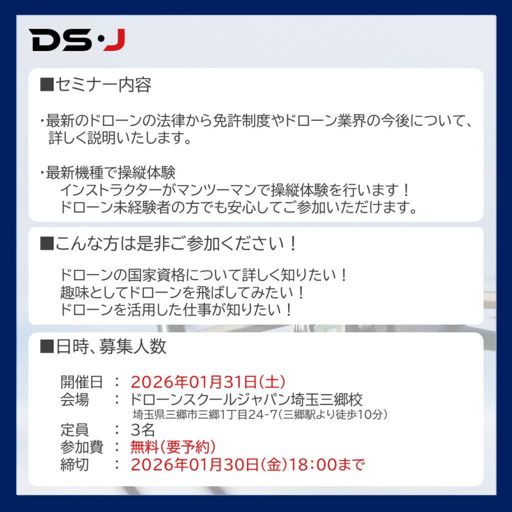 【無料セミナー】2026年1月31日 国家資格 無人航空機操縦士資格